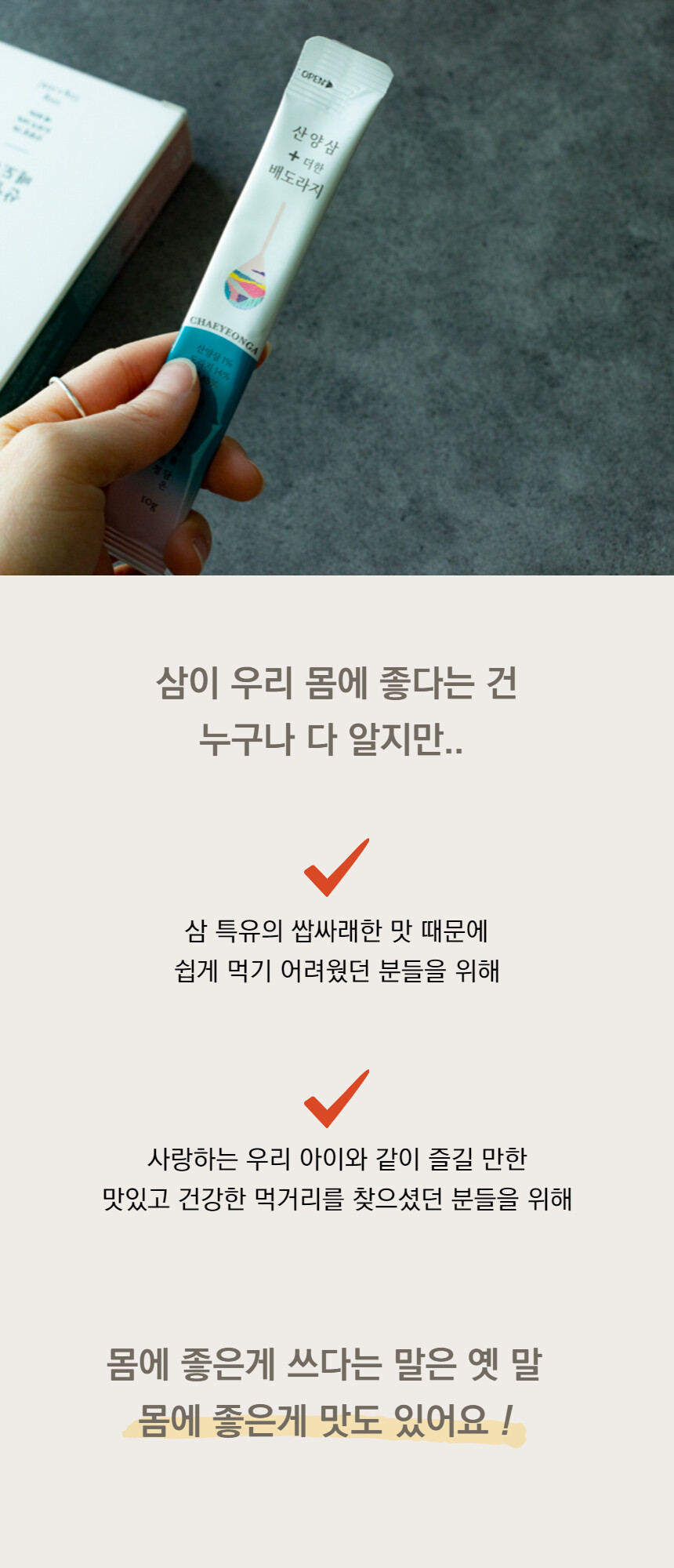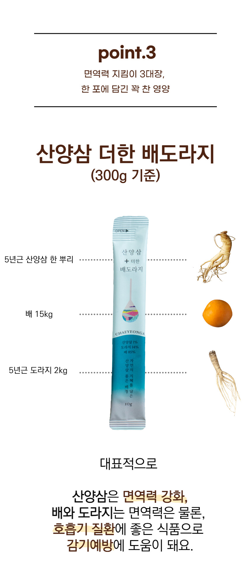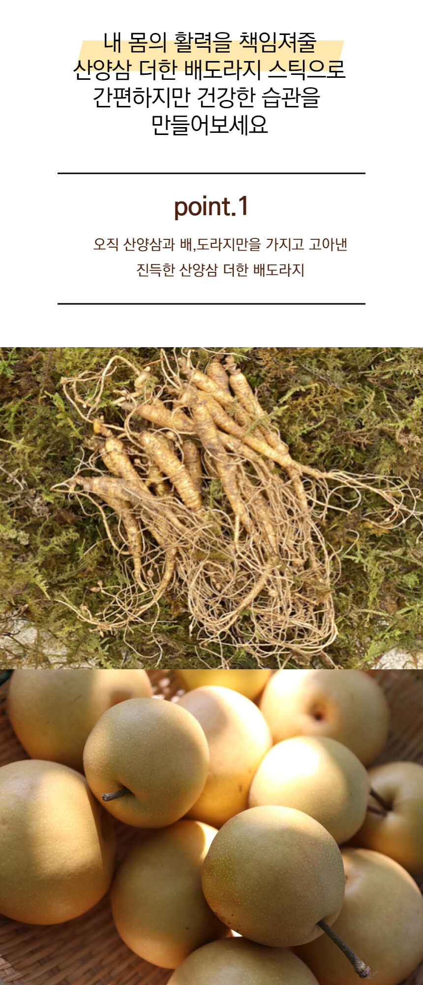 건강 지킴이 3대장 산양삼과 도라지,배가 한 포에 꽉 담긴 건강스틱